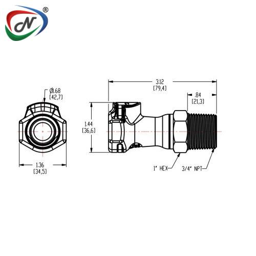 FFC101235 3/4 NPT Non-Valved Polysulfone Molded White Coupling Body