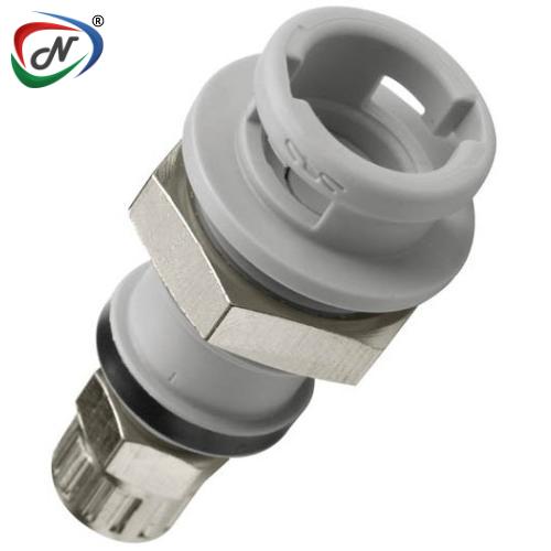 NS2D160412V 1/4 Hose Barb Valved Panel Mount Mld Gry Polypro Cplng Body FKM Seal